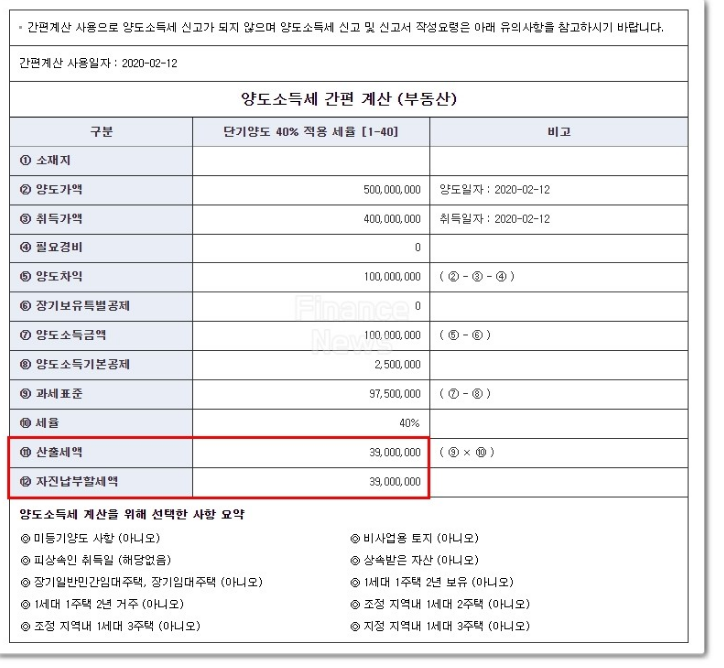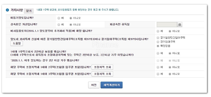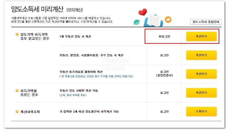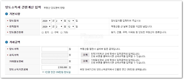 양도소득세 계산기 사용방법