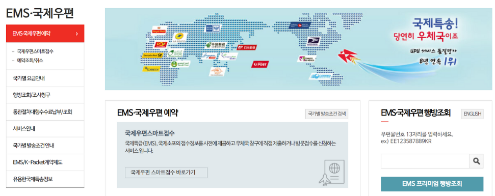 검색 포털사이트에 인터넷 우체국을 검색하면 위와 같은 메인화면이 보입니다. 인터넷 우체국 홈페이지 EMS 국제우편 카테고리를 보면 나오는 화면입니다